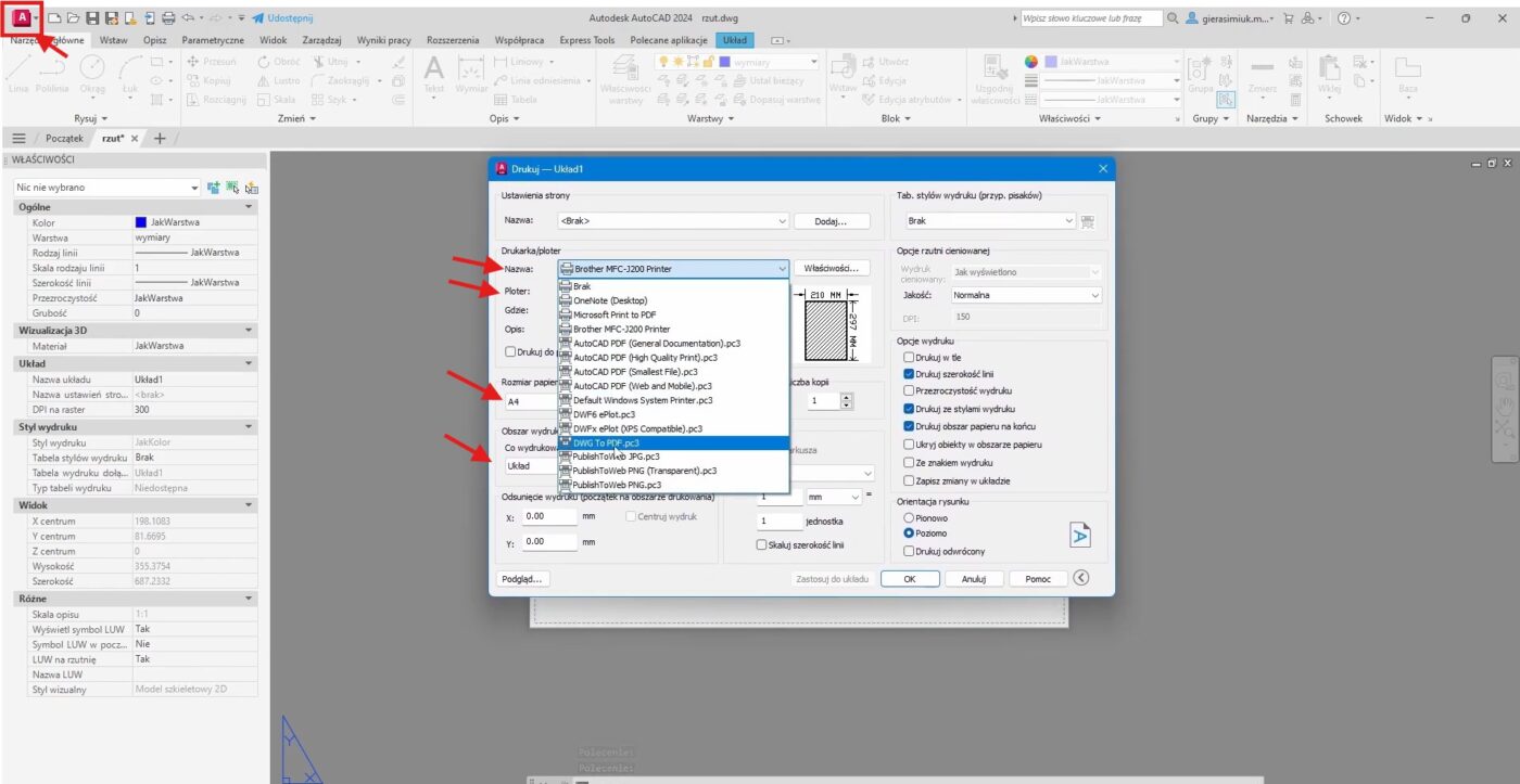 Gdy rysunek jest już idealnie wyskalowany, przygotowujemy się do ostatniego etapu, czyli wygenerowania finalnego pliku PDF.